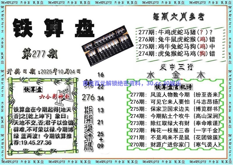 275期:绝杀二肖【马羊】开:鸡45